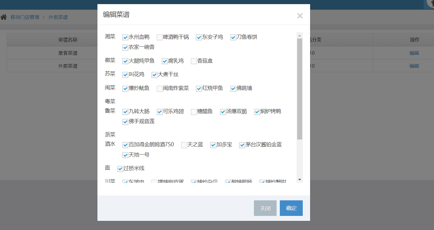 2、获取该菜谱已经拥有(勾选了哪些)的菜品id(list)