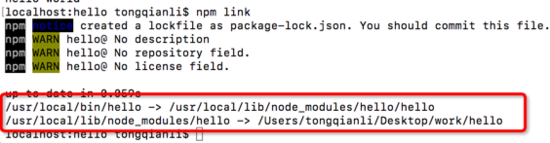 上面的命令会在NPM的全局模块目录内,生成一个符号链接文件,该文件的名字就是 package.json 文件中指定的模块名。