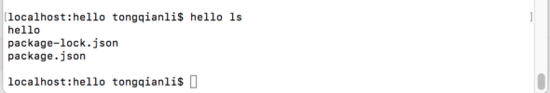 如果想把 hello 前面的路径去除,可以将 hello 的路径加入环境变量 PATH。但是,另一种更好的做法,是在当前目录下新建 package.json ,写入下面的内容。