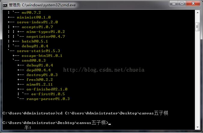 如图我进入了桌面上一个叫canvas五子棋的文件夹