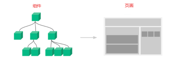 上图可看出,在Vue中,所谓组件化搭建页面,简单来说,页面实际上是由一个个功能独立的组件搭建而成。这些组件之间可以组合、嵌套,最终形成了我们的页面。