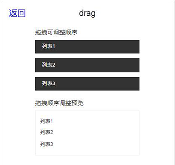– 然后,在touchmove事件中判断,若(currTop - initTop) % elHeight>= elHeight/2成立,即当元素拖至另一个元素块等于或超过1/2的位置时,即可将元素插入到最新的位置为newIndex = (currTop - initTop) / elHeight + oldIndex。
