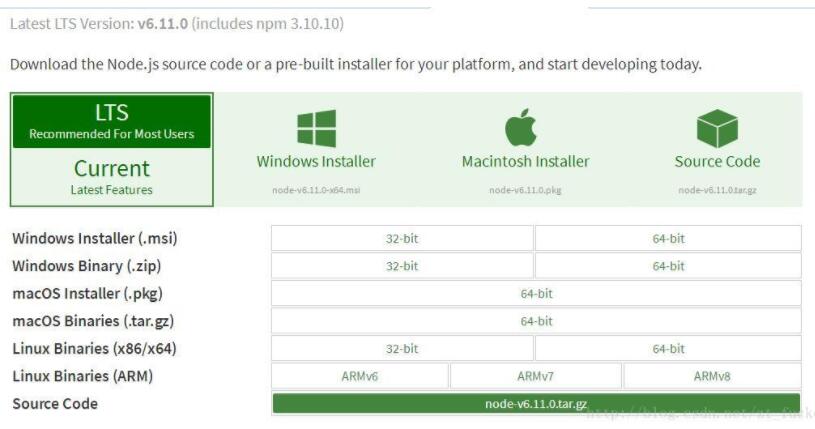 首先登陆官网:https://nodejs.org/en/
