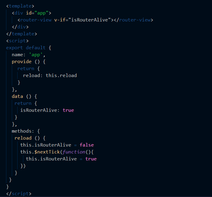 声明reload方法,控制router-view的显示或隐藏,从而控制页面的再次加载