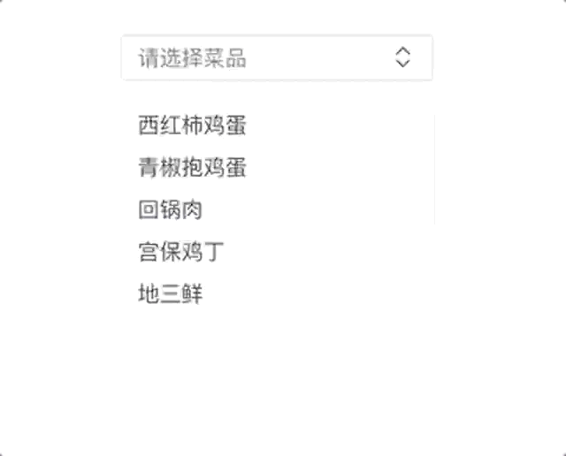 上面的代码有两点:一个是在mounted后面给整个document添加了点击事件,这样在点击时候就可以将options隐藏,但是,我们在点击输入框部分和选项内容时,我们不希望它触发,而是让它走我们之前写好的逻辑,所以给两个 click 事件都添加了 stop 修饰器来阻止冒泡,这样,点击到它们的时候就不会冒泡到 document 上面了。效果如下: