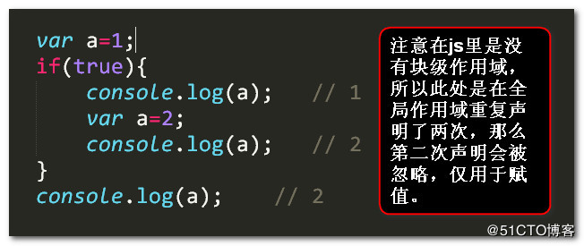 2:同一个变量只会声明一次,其他的会被忽略掉。