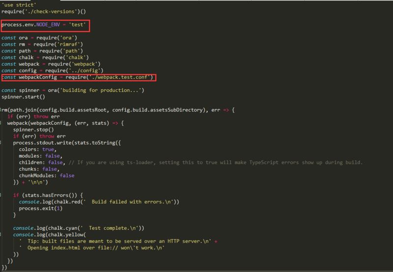 Step3. 在build文件夹中新建webpack.test.conf.js,内容可以直接拷贝同目录webpack.prod.conf.js内容,修改一些参数。