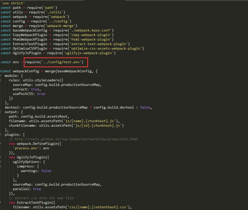 这样构建时就会去config文件夹下的test.env.js寻找环境变量。