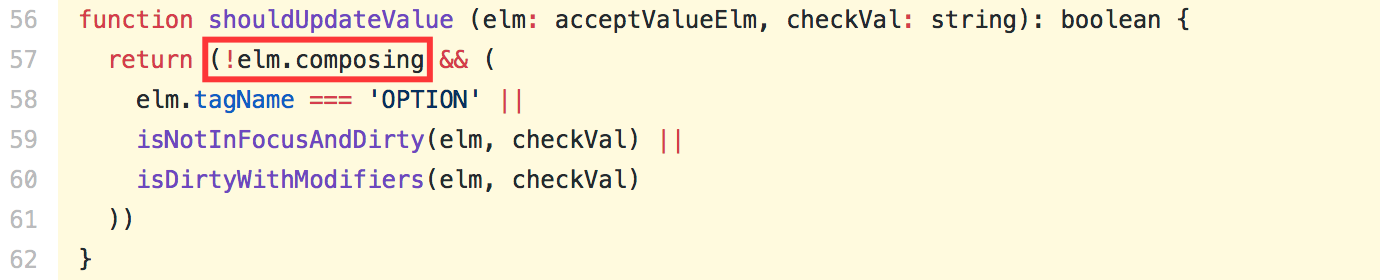 源代码中还发现,在是否刷新 dom 属性值时,也用到了 composing 属性: