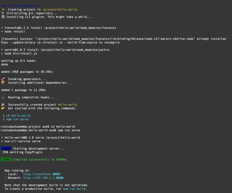 npm install -g @vue/cli vue create hello-world cd hello-world npm run serve