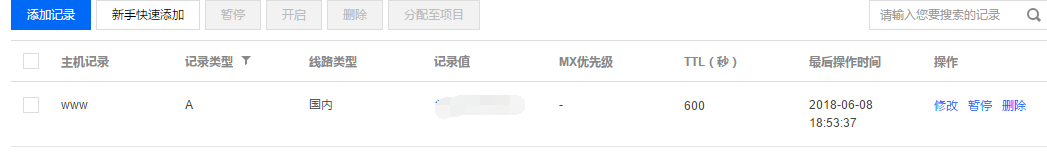 点击添加解析,按照下面这样填写就行 马赛克是你的外网ip