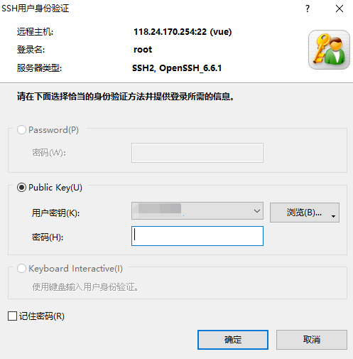 用户名一般都是root 密码由于我们之前设置了密钥 所以使用密钥登录,浏览选中之前设置密钥让你下载的密钥文件 导入即可。点击确定就登录成功了