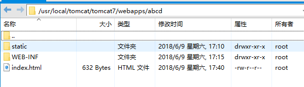然后将dist文件下的static文件家和index.html放在这个目录下 访问地址 http://xxxxxxx/abcd 就可以访问你的项目了 这样一般出现的路径问题就不会出现了 有的时候会出现样式错乱的问题,一般就是你在组件中修改了公共组件的样式 建议自定义样式 或者使用scoped 进行封装。