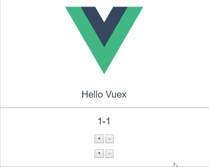 需要注意的是,此时如果点击'+',就会增加102,如果点击'-',就会增加99,最后的结果是mutations和getters共同作用的。