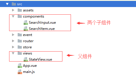 子组件文件名:SearchInput.vue 和 SearchItem.vue