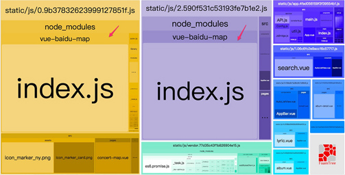 这样,verdor.js 又小了56kb.因为首页根本用不到vue-baidu-map. 当然这样会带来一个问题:当多个页面使用vue-baidu-map,会出现多个页面重复打包.