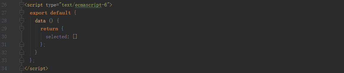4.在对应vue文件的script上进行data默认,如下图所示: