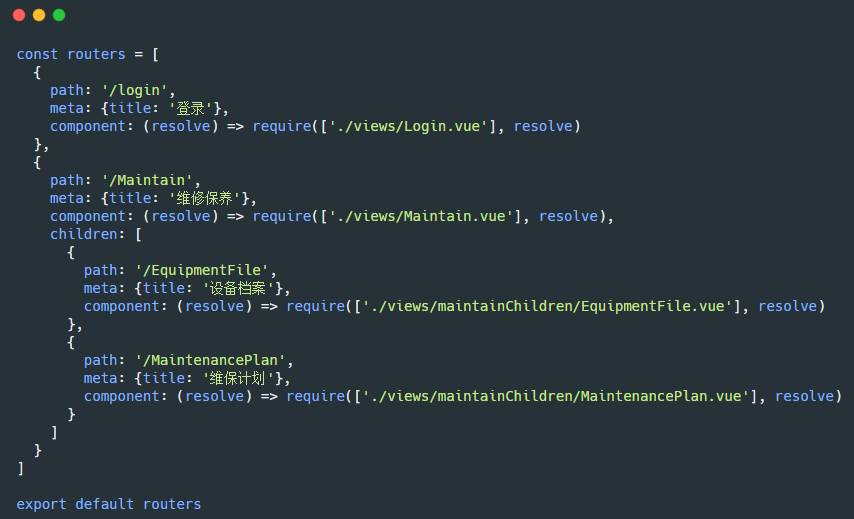 为了把路由分模块,然后每次进入一个新页面才加载该页面所需要的资源(也就是异步加载路由),我们可以像下面这样使用(router.js):