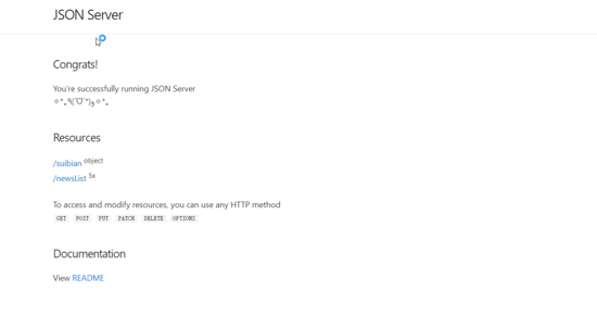现在重启服务器后浏览器地址栏输入localhost:3000能进入如下页面则说明json server启动成功了