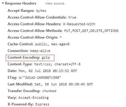 重启服务,观察网络面板里面的response header,如果看到如下红圈里的字段则表明gzip开启成功