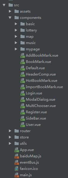 上图是Vue项目的首页,整个项目由vue-cli搭建,主要分为4个模块,见页面左侧导航栏,总体代码量不算太大,组件的话总共50个左右吧,项目结构见下图,不算特别大的项目,但是首屏加载时间居然这么慢。