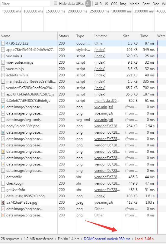 经过上述优化后,首页打开时间迅速下降,DomContentLoaded用时不到1s,load完全加载用时不到4s,耗时较多的是几张背景大图,本来体积就大,后续考虑放到cdn上