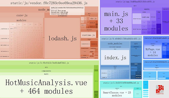 ps:webpack-bundle-analyzer是神器,能够有效分析出包占用的体积情况~下图是最终优化后的包组成结构图,最初打包的结构图比下图大很多,主要多了echarts,vue,vue-router,vuex模块