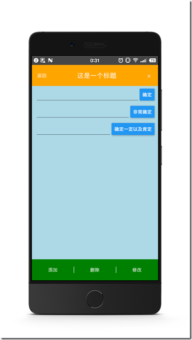 我们让头部的分成3部分,左边模拟一个返回按钮,中间显示标题文字,右边模拟一把小叉: