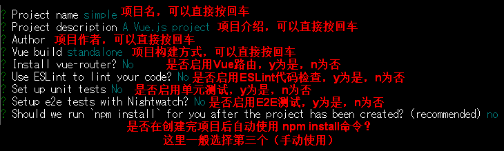 //vue init 模板名 项目名 vue init webpack simple