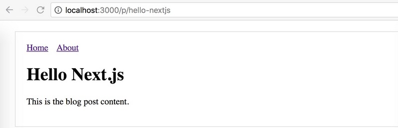 当我们在浏览器中请求https://localhost:3000/about时,可以看到页面展示对应内容。(==这里需要注意:请求url的path必须和page的文件名大小写一致才能访问,如果访问localhost:3000/About的话是找不到about页面的。==)