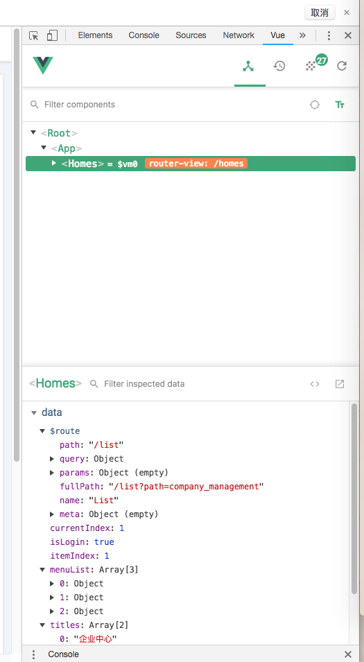 打开调试模式,你就会看见最后有个vue标记,打开能看见当前vue页面渲染相关数据