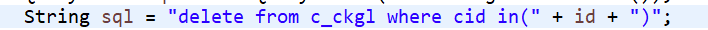 这时我们获得到的idcard 就是一个我们想要的到的数据,同时给他们中间以逗号隔开,传递到后台,执行多行删除语句: