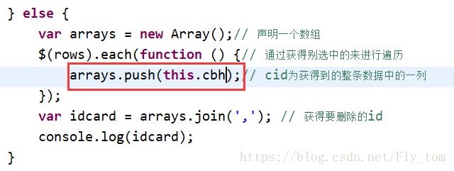 arrays.push(this.cid);// cid为获得到的整条数据中的一列