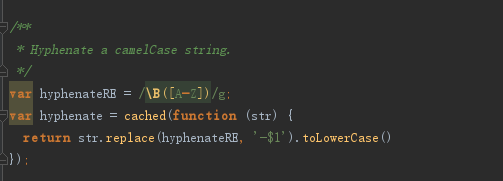 而,在extractPropsFromVNodeData()中,Vue通过调用内部方法hyphenate,把驼峰形式的属性转换为横断线形式。