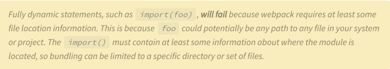 因此,如果我们直接传入一个变量,webpack就会把 (整个电脑的包都打包进来[不闹]) 认为你在逗他,并且抛出一个WARNING: Critical dependency: the request of a dependency is an expression。