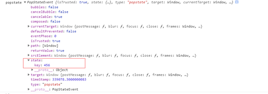 前面pushState中传入的state对象,可以在这边接收到,并根据需要去做一些处理。