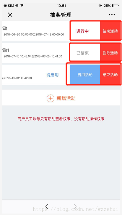 <h4>商户员工账号只有活动查看权限,没有活动操作权限</h4>