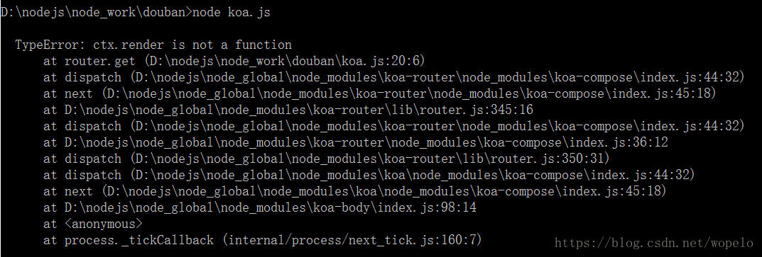 最近在学习使用koa2,在尝试用koa2复写之前用express写的一个入口文件的时候发现命令行报错ctx.render is not a function