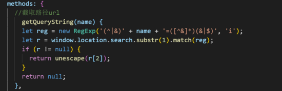 注释掉的部分是一开始我用params来传参的,这样就会出现我上面提到到在IOS上SPA页面不会刷新 url的问题,但是原生的window.location.href可以解决这个问题!!!这样在子页面我们在create生命周期去截取url中的字符串把需要的参数截取下来,赋值到data中去一样可以使用. 下面是子页面接收数据截取字符串(这里的截取字符串是直接复制找的,赶时间,你可以自己写,一次性截取3 个字符串)!!!