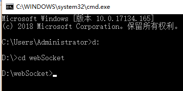 2.然后新建一个文件夹(我的node.js是安装在Ç盘的,然后再d盘下新建了个叫webSocket的文件夹)