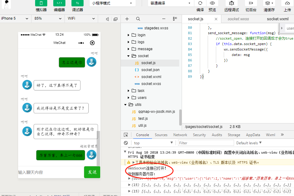 预览的时候一定要打开调试,因为这不是WSS协议,是没法直接用的、