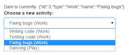 上面这条语句就是把选择的值与engineer.currentActivity进行双向数据绑定,然后列表中的选项是activities中的每一个值。数据如下:
