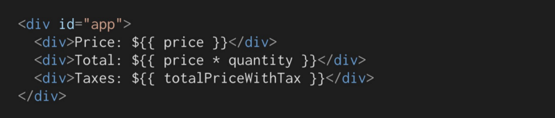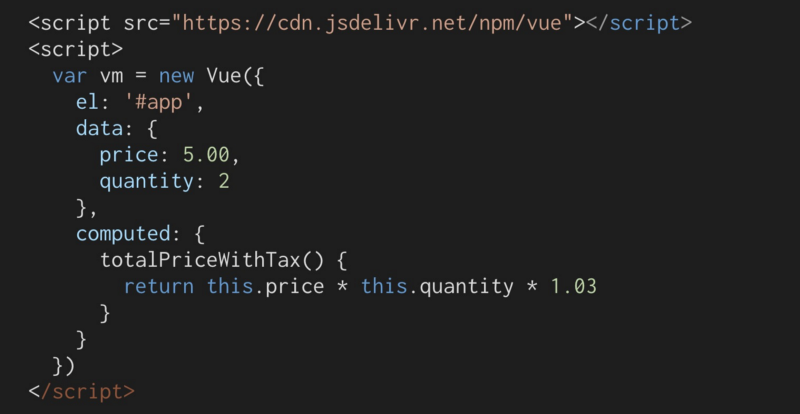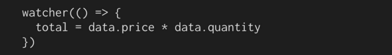 在Vue,我们希望每当价格或数量更新时,总计都会得到更新。我们想要: