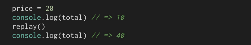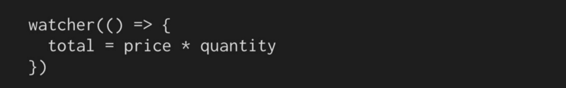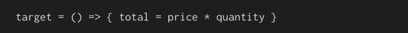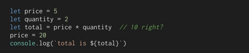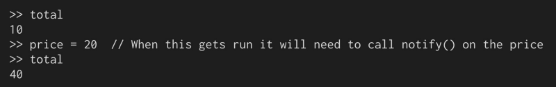 首先,我们需要一些方法告诉我们的应用程序,“我即将运行的代码,存储它,我可能需要你在另一个时间运行它。”然后我们将要运行代码,如果价格或数量变量得到更新,再次运行存储的代码。