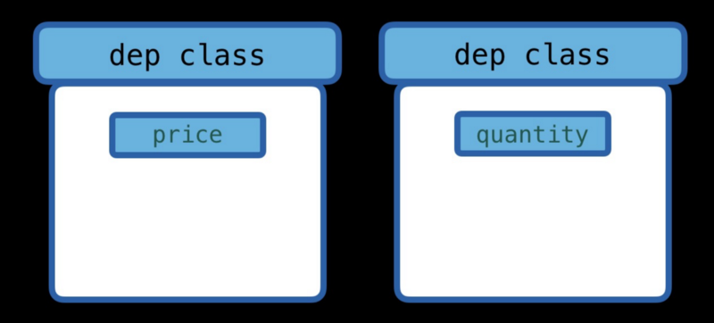 让我们假设我们的每个属性(价格和数量)都有自己的内部Dep类。