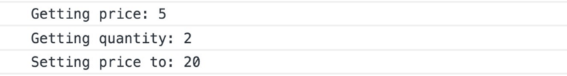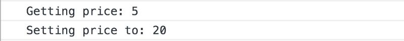 如您所见,它只记录两行。但是,它实际上并没有获取或设置任何值,因为我们过度使用了该功能。我们现在加回来吧。 get()期望返回一个值,而set()仍然需要更新一个值,所以让我们添加一个internalValue变量来存储我们当前的价格值。