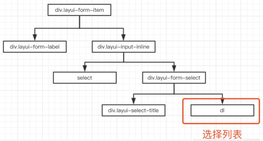 此处select可供选择的元素是通过ajax从后台请求获得的,需要根据动态结果决定选择哪一个。分析一下渲染结果的结构,得到dom树如下: