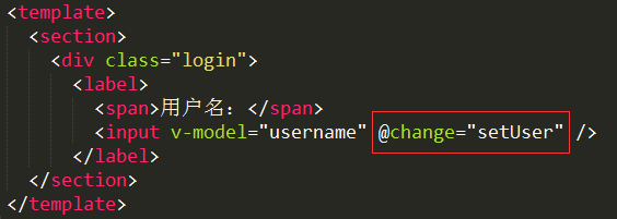 这是 login.vue 的 HTML 部分,当<input>的值发生变化的时候,将 username 传递给 App.vue