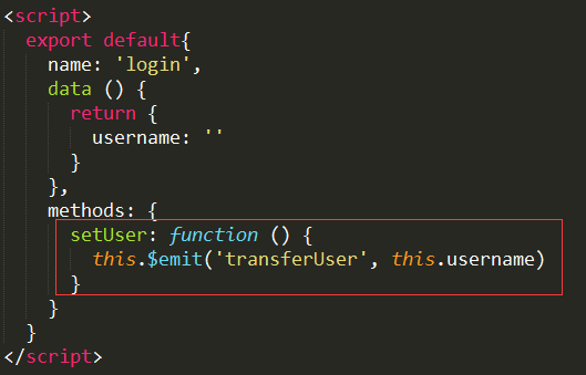 在 setUser 中,使用了$emit来遍历transferUser事件,并返回 this.username