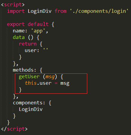 getUser 方法中的参数 msg 就是从子组件传递过来的参数 username